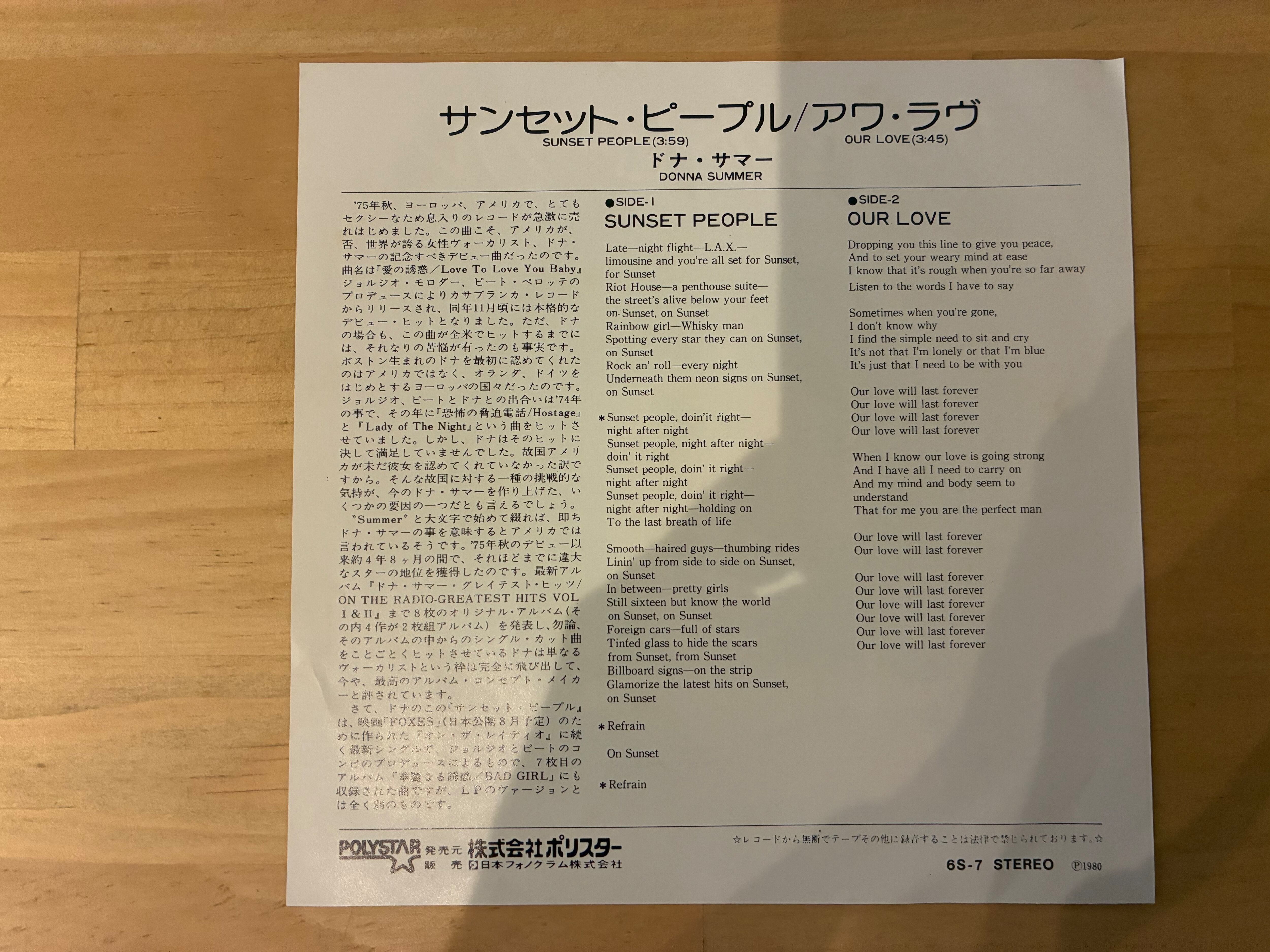 DONNA SUMMER / SUNSET PEOPLE