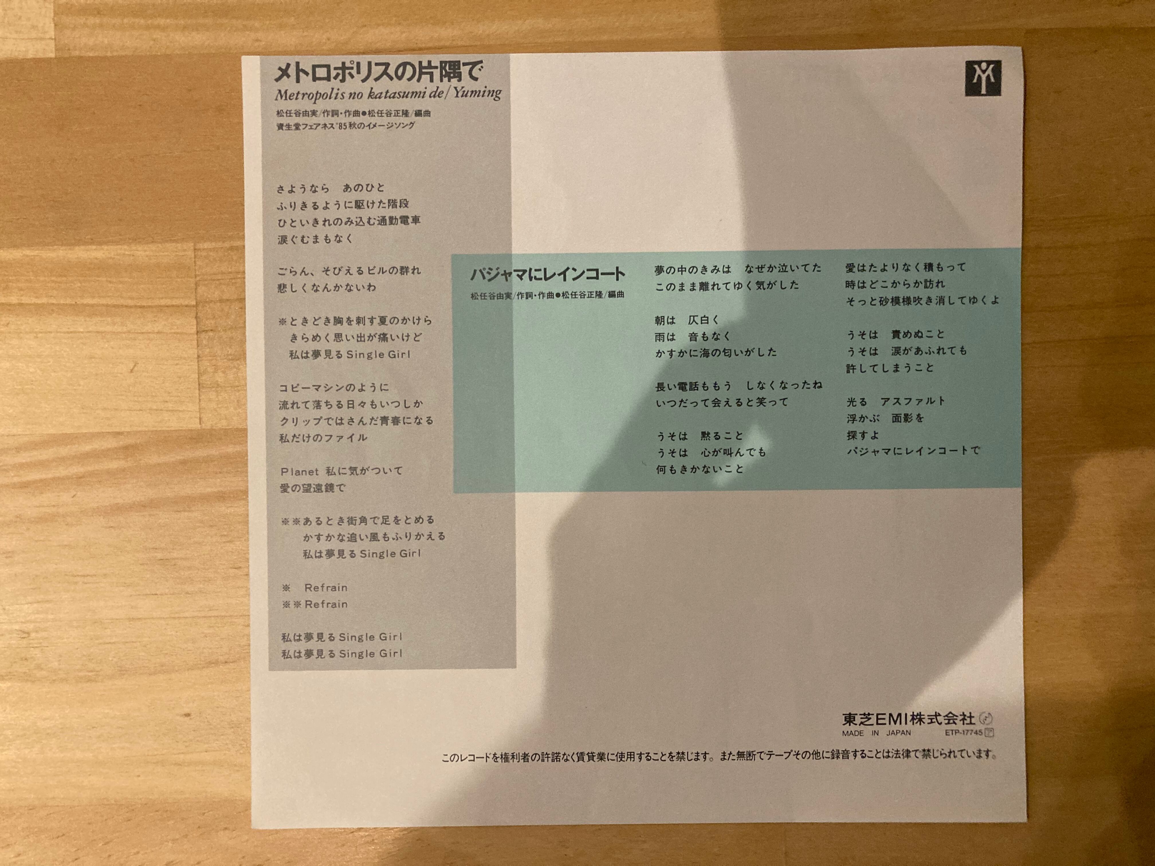 松任谷由実 / メトロポリスの片隅で